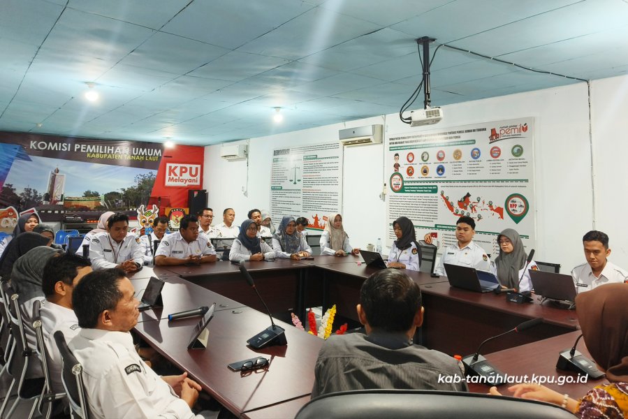 Pelaihari (26/01/2026), Bertempat di Kantor KPU Kabupaten Tanah Laut, Ketua, Anggota, dan Sekretaris KPU Kabupaten Tanah Laut melaksanakan Rapat Pleno Pembahasan dan Persetujuan Tim Pelayanan Pengaduan SP4N-LAPOR. Rapat pleno ini dilaksanakan sebagai bagian dari upaya penguatan sistem pelayanan pengaduan masyarakat guna memastikan pengelolaan laporan melalui SP4N-LAPOR! berjalan secara optimal, transparan, dan akuntabel sesuai dengan ketentuan peraturan perundang-undangan. Melalui kegiatan ini, KPU Kabupaten Tanah Laut berkomitmen untuk terus meningkatkan kualitas pelayanan publik. ....