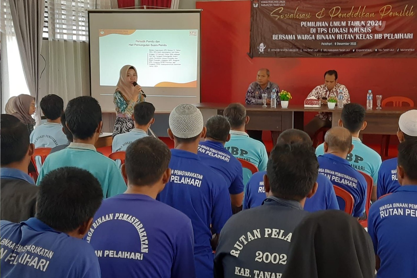 Jumat, (8/12/2023) Bertempat di aula Rutan Kelas II B Pelaihari, KPU Kabupaten Tanah Laut laksanakan kegiatan Sosialisasi dan Pendidikan Pemilih Pemilihan Umum Tahun 2024 di TPS Lokasi Khusus Bersama Warga Binaan Rutan Kelas II B Pelaihari.