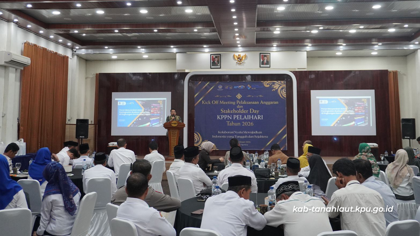 Pelaihari (9/2/2026), Bertempat di Algoritma Cafe and Resto, Sekretaris KPU Kabupaten Tanah Laut beserta Kassubag Perencanaan Data dan Informasi KPU Kabupaten Tanah Laut menghadiri kegiatan Kick Off Meeting Pelaksanaan Anggaran, Stakeholders Day, dan Sosialisasi Antikorupsi Tahun Anggaran 2026 serta Press Conference APBN Periode Desember Tahun Anggaran 2025 yang diselenggarakan oleh KPPN Pelaihari.