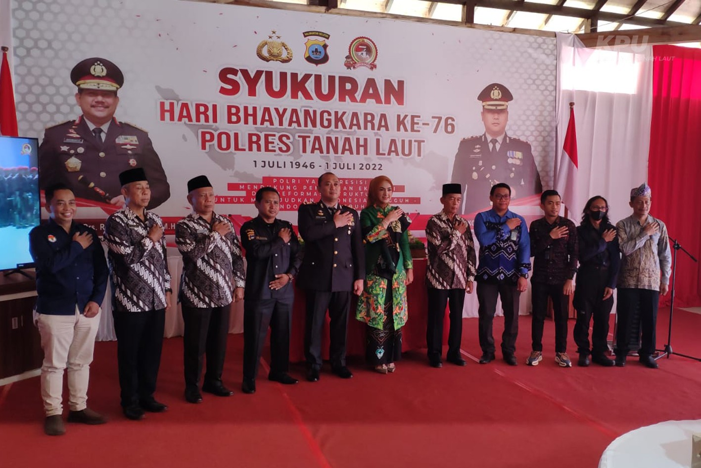Pelaihari (5/7/2022) bertempat di Mapolres Tanah Laut, Ketua KPU Kab. Tanah Laut, Arif Mukhyar menghadiri acara Syukuran Hari Bhayangkara ke-76 Polres Tanah Laut.