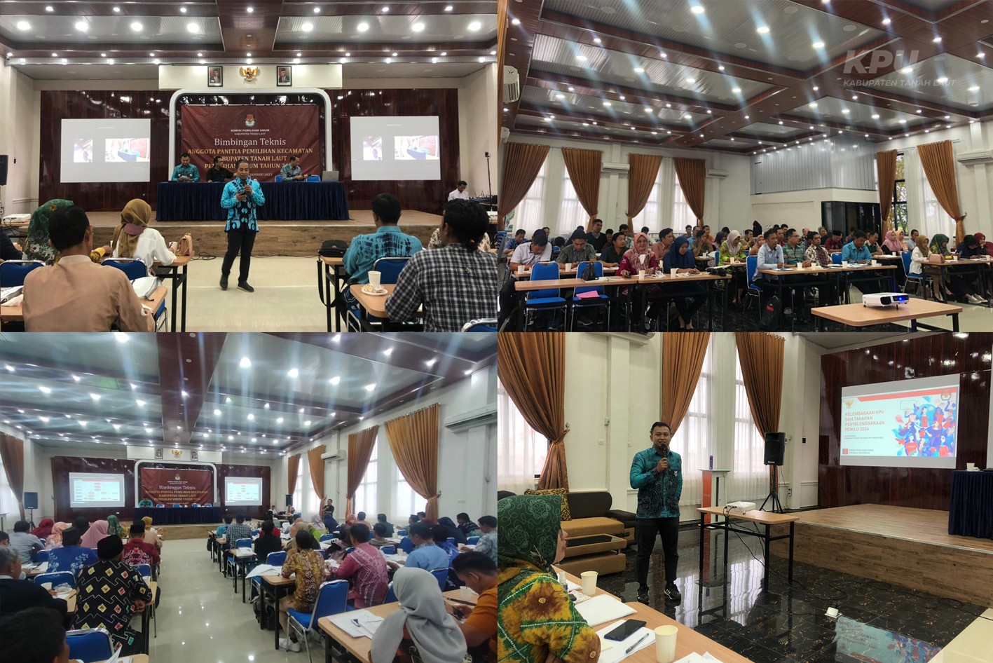 Pelaihari (5/1/2023) KPU Kabupaten Tanah Laut melaksanakan Bimbingan Teknis Anggota Panitia Pemilihan Kecamatan (PPK) tingkat Kabupaten Tanah Laut. Dalam kegiatan ini diikuti sebanyak 54 peserta dan 1 peserta mengikuti melalui aplikasi zoom meeting.
