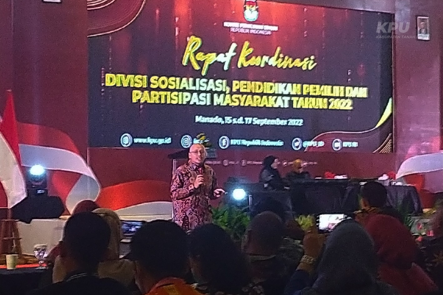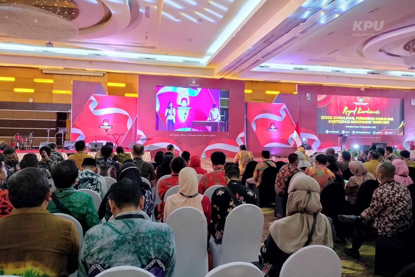 Sejak tanggal 15 s.d 17 september 2022, KPU Kabupaten Tanah Laut mengikuti kegiatan Rapat Koordinasi Divisi Sosialisasi, Pendidikan Pemilih, dan Partisipasi Masyarakat Tahun 2022 yang diselenggarakann oleh KPU Republik Indonesia di Hotel Grand Kawanua International City Novotel manado Golf Resort & Convention Center di Kota Manado Provinsi Sulawesi Utara. Dalam kegiatan Rapat koordinasi ini diikuti sebanyak 1.096 orang peserta yang terdiri dari Anggota KPU Provinsi/KIP Aceh Divisi Sosialisasi, Pendidikan Pemilih dan Partisipasi Masyarakat, anggota KPU KIP/KPU Kabupaten/Kota Divisi Sosialisasi, Pendidikan Pemilih dan Partisipasi Masyarakat, Kepala Bagian pada sekretariat KPU Provinsi/KIP Aceh dan Kepala Sub Bagian KPU Kabupaten/Kota seluruh Indonesia yang memiliki tugas dan fungsi pengelolaan sosialisasi, pendidikan pemilih dan hubungan masyarakat. Dalam kesempatan ini KPU Kabupaten Tanah Laut dihadiri oleh Fendi Haryadi, S.Pi Anggota KPU Kabupaten Tanah Laut Divisi Sosialisasi, Pendidikan Pemilih, Partisipasi Masyarakat dan SDM dan Kasubbag Teknis Penyelenggaraan, Partisipasi Dan Hubungan Masyarakat, Hendra Suryana.