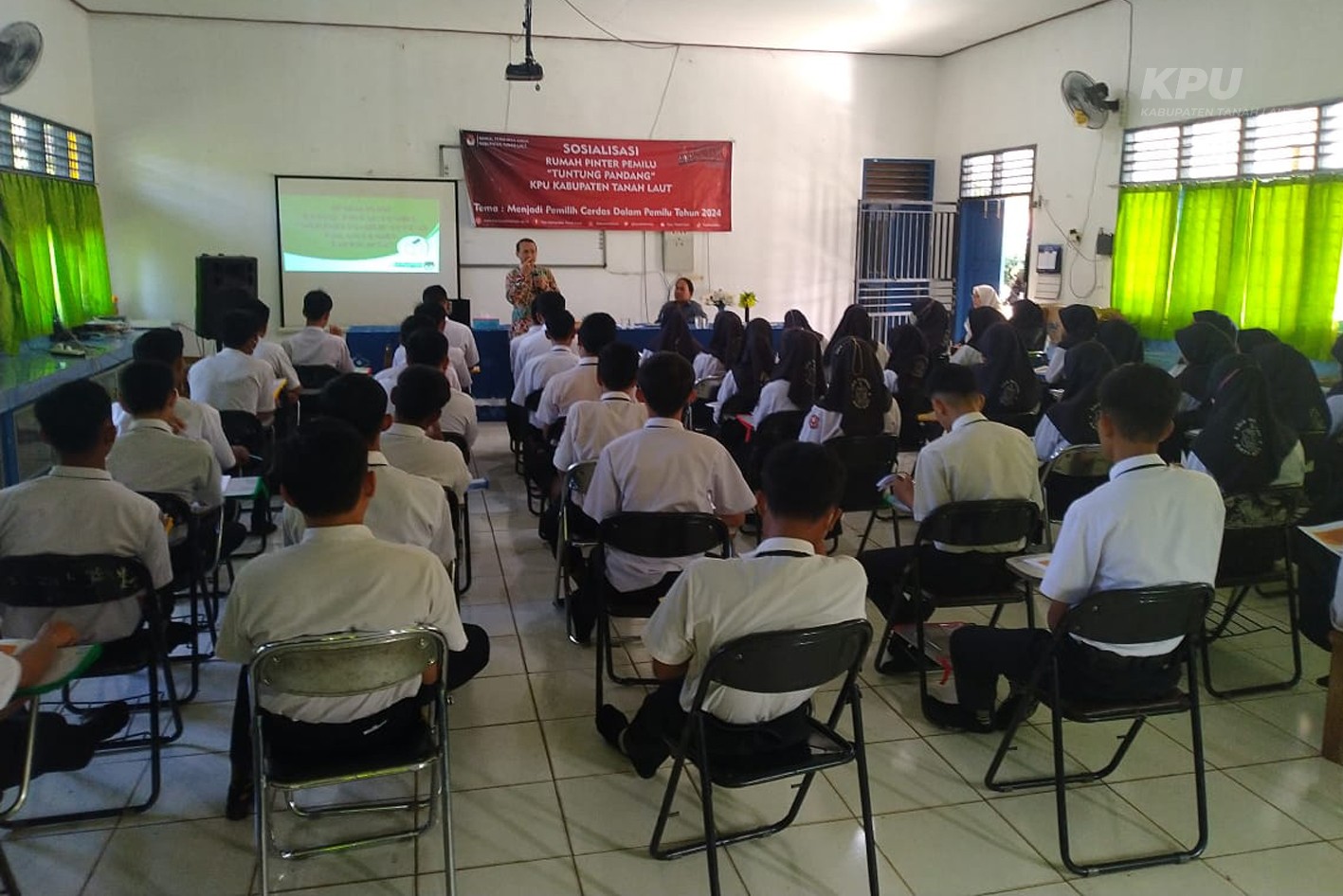 Pelaihari (12/10/2022) KPU Kabupaten Tanah Laut melaksanakan kegiatan Sosialisasi Rumah Pintar Pemilu (RPP) "Tuntung Pandang" KPU Kabupaten Tanah laut Dengan Tema : Menjadi Pemilih Cerdas Dalam Pemilu Tahun 2024 di SMA Negeri 1 Bati-Bati. Kegiatan ini diikuti oleh 50 peserta yang terdiri dari perwakilan Dewan Guru dan Siswa-siswi Sekolah SMA Negeri 1 Bati-Bati. Kegiatan diawali dengan sambutan Perwakilan Dewan Guru SMA Negeri 1 Bati-Bati sekaligus membuka kegiatan.