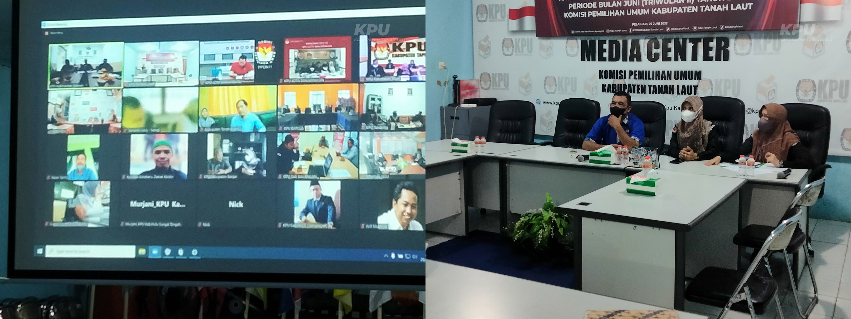 Rabu (29/06/2022) Bertempat di ruang Media Center KPU Kabupaten Tanah Laut, Komisioner KPU Divisi Hukum dan Pengawasan Akhmad Rozi, S.Sos.Ms.i, Sekretaris KPU Kabupaten Tanah Laut, Jumiati, SE serta Kasubbag Hukum dan SDM Lian Fakhriani, SE kembali mengikuti rangkaian kegiatan acara PAPADAAN (Pandir-pandir Demokrasi Wan Kepemiluan) yang pada kali ini sudah memasuki Sesi Ke-11 yang dilaksanakan oleh KPU Provinsi Kalimantan Selatan.