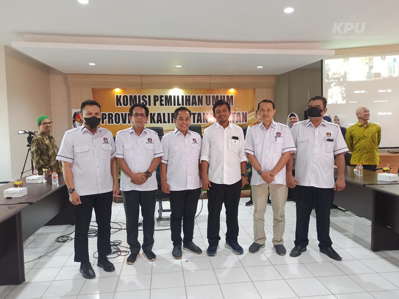 Pada kegiatan yang dilaksanakan secara luring dan daring tersebut, turut hadir Ketua, Anggota, dan Sekretaris KPU Provinsi Kalimantan selatan beserta Ketua dan Anggota KPU Kab/Kota se-Kalimantan Selatan. KPU Kabupaten Tanah Laut dalam kegiatan ini menghadiri secara luring oleh ketua dan seluruh anggota KPU Kabupaten Tanah Laut.
