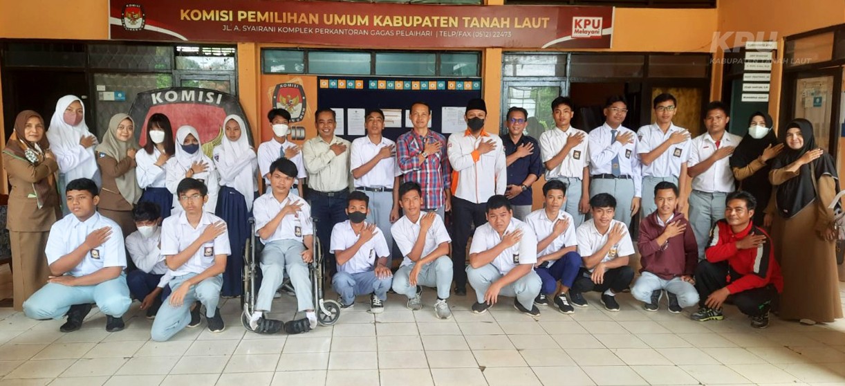 Pelaihari (10/10/2022) KPU Kabupaten Tanah Laut melaksanakan kegiatan NgoPI (Ngobrol Pintar Pemilu) Seri 5 Segmen Basis Pemilih berkebutuhan Khusus Tema : Membangun Pemilu 2024 Yang Inklusif Dan Aksesibel. Kegiatan ini diikuti oleh 25 peserta yang terdiri dari perwakilan Dewan Guru dan Siswa-siswi Sekolah Luar Biasa Negeri 1 Pelaihari. Kegiatan diawali dengan sambutan Ketua KPU Kabupaten Tanah Laut Arif Mukhyar sekaligus membuka kegiatan.