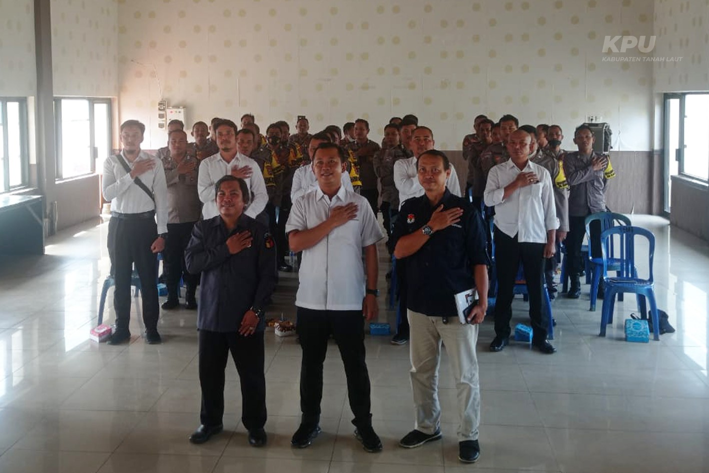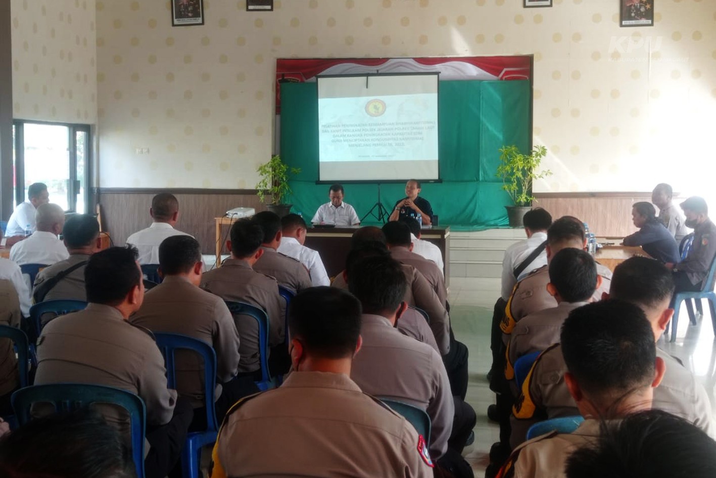 Pelaihari (19/9/2022) KPU Kabupaten Tanah Laut menjadi narasumber dalam kegiatan Pelatihan Peningkatan Kemampuan Bhabinkamtibmas dan Kanit Intelkam Polsek Jajaran Polres Tanah Laut yang digelar oleh Polres Tanah laut. Kegiatan ini diawali dengan sambutan oleh Kasat Intel Polres Tanah Laut sekaligus membuka kegiatan. Dalam sambutannnya Kasat Intel Polres Tanah Laut menyampaikan bahwa kegiatan pelatihan ini diselenggarakan untuk peningkatan kapasitas SDM guna menciptakan kondusifitas Kamtibmas menjelang Pemilu Tahun 2024.