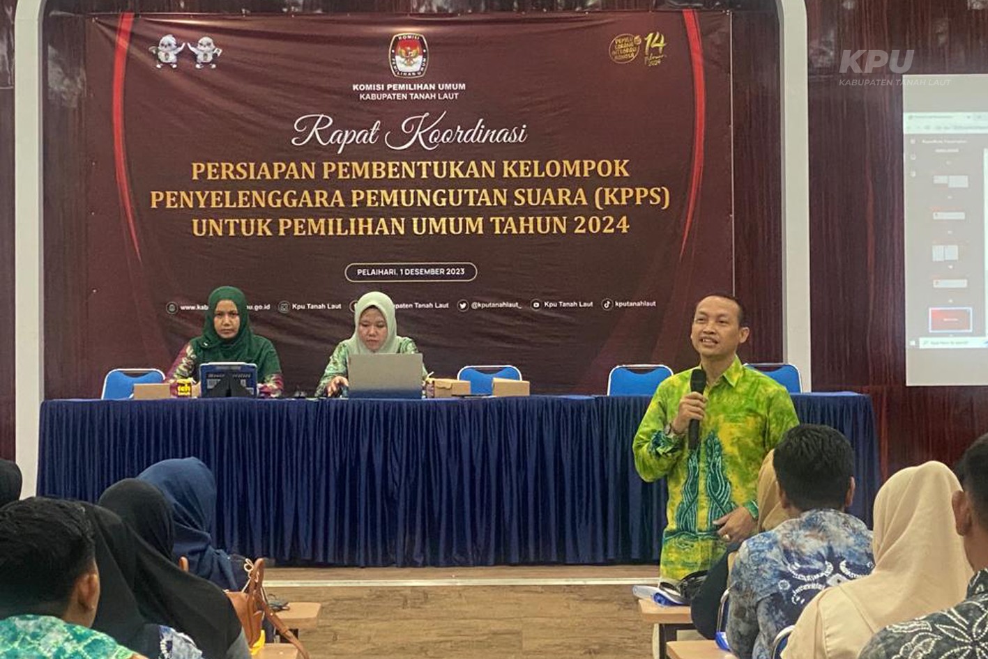Pelaihari (4/12/23) KPU Kabupaten Tanah Laut menyelenggarakan Rapat Koordinasi dalam Rangka Optimalisasi Pelaksanaan Sosialisasi Dan Pendidikan Pemilih Untuk Meningkatkan Partisipasi Masyarakat Dalam Penyelenggaraan Pemilihan Umum Tahun 2024. Kegiatan ini diikuti oleh Seluruh Panitia Pemilihan Kecamatan se-Kabupaten Tanah Laut.