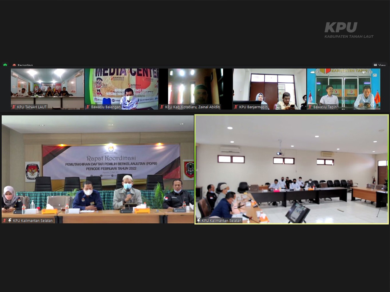 Rabu (9/3/2022) KPU Kabupaten Tanah Laut mengikuti zoom meeting Rapat Koordinasi Pemutakhiran Daftar Pemilih Berkelanjutan (PDPB) Periode Bulan Februari Tahun 2022 di Tingkat Provinsi Kalimantan Selatan.