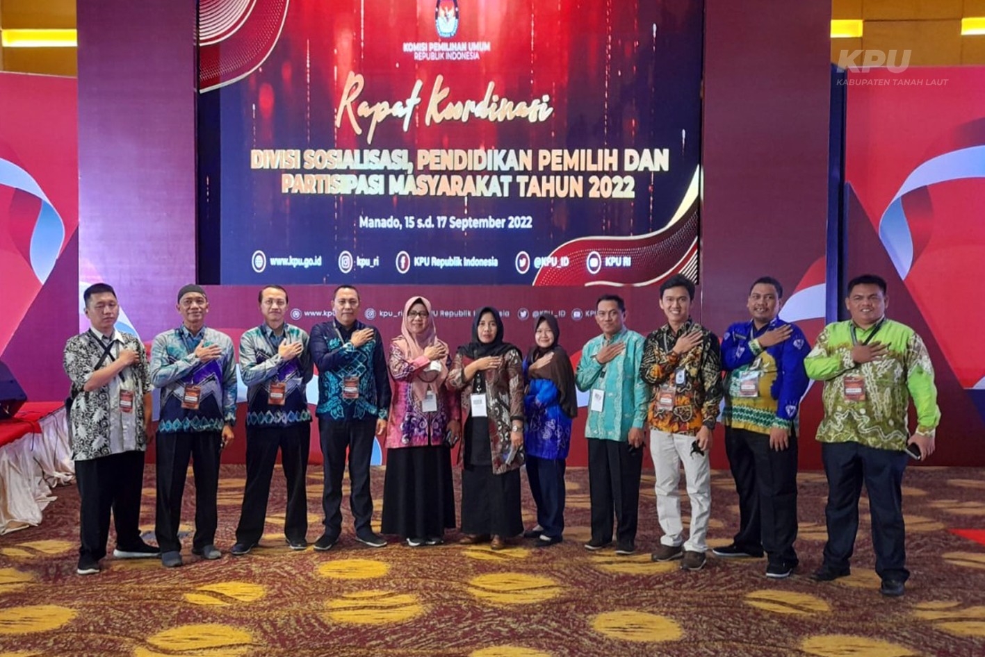 Sejak tanggal 15 s.d 17 september 2022, KPU Kabupaten Tanah Laut mengikuti kegiatan Rapat Koordinasi Divisi Sosialisasi, Pendidikan Pemilih, dan Partisipasi Masyarakat Tahun 2022 yang diselenggarakann oleh KPU Republik Indonesia di Hotel Grand Kawanua International City Novotel manado Golf Resort & Convention Center di Kota Manado Provinsi Sulawesi Utara. Dalam kegiatan Rapat koordinasi ini diikuti sebanyak 1.096 orang peserta yang terdiri dari Anggota KPU Provinsi/KIP Aceh Divisi Sosialisasi, Pendidikan Pemilih dan Partisipasi Masyarakat, anggota KPU KIP/KPU Kabupaten/Kota Divisi Sosialisasi, Pendidikan Pemilih dan Partisipasi Masyarakat, Kepala Bagian pada sekretariat KPU Provinsi/KIP Aceh dan Kepala Sub Bagian KPU Kabupaten/Kota seluruh Indonesia yang memiliki tugas dan fungsi pengelolaan sosialisasi, pendidikan pemilih dan hubungan masyarakat. Dalam kesempatan ini KPU Kabupaten Tanah Laut dihadiri oleh Fendi Haryadi, S.Pi Anggota KPU Kabupaten Tanah Laut Divisi Sosialisasi, Pendidikan Pemilih, Partisipasi Masyarakat dan SDM dan Kasubbag Teknis Penyelenggaraan, Partisipasi Dan Hubungan Masyarakat, Hendra Suryana. Latar belakang dilaksanakannnya Rapat Koordinasi Divisi Sosialisasi, Pendidikan Pemilih, dan Partisipasi Masyarakat Tahun 2022 oleh KPU Republik Indonesia yakni dalam menyongsong gelaran pesta Demokrasi tahun 2024, penekanan partisipasi masyarakat dalam konteks kuantitas dan kualitas menjadi focus dalam perumusan stategi dan informasi, program dan kegiatan sosialisasi pendidikan pemilih, kehumasan dan hubungan antar lembaga untuk mensukseskan terlaksananya penyelenggaran Pemilu serentak tahun 2024 dalam rangka mewujudkan Pemilu sebagai sarana Intergrasi Bangsa selain itu seagai sarana Penguatan Internal antara KPU dengan KPU Provinsi/KPI Aceh dan KPU Kabupaten/Kota seluruh Indonesia. Kegiatan Rapat Koordinasi Divisi Sosialisasi, Pendidikan Pemilih, dan Partisipasi Masyarakat Tahun 2022 diawali dengan sambutan Ketua KPU Republik Indonesia Hasyim Asy'ari sekaligus membuka kegiatan Rapat koordinasi. Selanjutnya dilakukan penyampaian sambutan oleh Anggota KPU Republik Indonesia Ketua Divisi Sosialisasi, Pendidikan Pemilih dan Partisipasi Masyarakat, August Mellaz. Dalam kegiatan Rakoor dilakukan pembagian diskusi tiga panel. Diskusi panel pertama yakni penyampaian materi mengenai Arah Kebijakan KPU dalam Mendorong Peningkatan Kualitas dan Kuantitas Partisipasi Masyarakat pada Pemilu 2024 yang disampaikan oleh August Mellaz. Kemudian dilanjutkan dengan penyampaian materi Peran Pemerintah dan Pemerintah Daerah dalam Memfasilitasi Peningkatan Partisipasi Politik Masyarakat pada Penyelenggaraan Pemilu 2024 yang disampaikan oleh Rahmat Santoso Kasubdit Fasilitasi Pendidikan Etika dan Budaya Politik dari Kementrian Dalam Negeri. Diskusi Panel Kedua yakni membahas mengenai Strategi dan Metode Komunikasi Publik yang Efektif dan Partisipatif bagi KPU, KPU Provinsi/KIP Aceh dan KPU/KIP Kabupaten/Kota dalam Menyukseskan Pemilu 2024 yang disampaikan oleh Anisha Dasuki dari News Anchor iNews dan dilanjutkan dengan penyampaian materi oleh Uni Lubis yang menyampaikan materi Aspirasi Milenil dan Gen Z di Pemilu 2024. Diskusi Panel ketiga yakni penyampaian materi sharing session up date analisis media yang mengangkat materi memperluas ruang komunikasi pemilu 2024 oleh Yan Kurniawan (Senior Analyst Drone Emprit) dan dilanjutkan dengan penyampaian materi Trust Business Digital Native and Digital Naïve dari Abie Besman dari Kompas TV. Sebelum kegiatan Rapat Koordinasi Divisi Sosialisasi, Pendidikan Pemilih, dan Partisipasi Masyarakat Tahun 2022 diberakhir dilakukan penyampian arahan oleh Sekretaris Jedral KPU Republik Indonesia, Bernad Dermawan Sutrisno.
