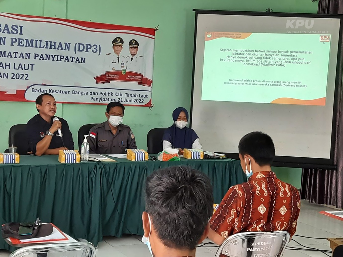 Oleh : Fendi Haryadi Ketua Divisi Sosialisasi, Pendidikan Pemilih, Partisipasi Masyarakat dan SDM KPU Kabupaten Tanah Laut Menumbuhkan kesadaran demokrasi yang memadai dari masyarakat termasuk generasi muda diperlukan adanya pendidikan demokrasi sejak dini melalui Kurikulum Merdeka Proyek Penguatan Profil Pelajar Pancasila (P5) Dengan Tema “SUARA DEMOKRASI” UPTD SMP Negeri 3 Pelaihari Bersama KPU Kabupaten Tanah Laut mengimplementasikan demokrasi sejak dini, demokrasi dari sekolah melalui pengalaman praktis, pelaksanaan pemilihan ketua dan wakil ketua OSIS Periode 2022 – 2023 secara langsung di ikuti oleh seluruh siswa mulai dari kelas 7 sampai kelas 9. Proyek Penguatan Profil Pelajar Pancasila (P5) Dengan Tema “SUARA DEMOKRASI” ini merupakan rangkaian kegiatan Pendidikan Pemilih yang dilaksanakan oleh Divisi Sosialisasi, Pendidikan Pemilih, Partisipasi Masyarakat dan SDM KPU Kabupaten Tanah Laut kepada dimulai dengan kunjungan KPU 140 peserta terdiri dari siswa dan perwakilan dewan guru. Salah satu materi yang wajib disampaikan adalah “Pentingnya Demokrasi, Pemilu dan Partisipasi”. Dimana siswa diberikan pemahaman tentang Terminologi Demokrasi, ciri dan tujuan demokrasi. Siswa juga diajak diskusi terkait implementasi domokrasi di lingkungan sekolah serta pentingnya partisipasi dalam pemilu dan pemilihan sehingga kelak siswa menjadi pemilih yang cerdas. Pada saat yang berbeda para siswa dan guru yang terdiri dari 132 siswa dan 11 dewan guru berkesempatan berkunjungan ke kantor KPU Kabupaten Tanah Laut. Dalam kegiatan ini disampaikan 3 materi yaitu (1) Sistem dan Tahapan Pemilu; (2) Pemilih dan Pemuktahiran Daftar Pemilih; (3) Peserta Pemilu dan teknis pemilihan Di TPS. Tidak Cuma pemaparan materi saja para siswa berkesempatan juga melakukan simulasi Pemungutan dan Perhitungan Suara di Tempat Pemungutan Suara (TPS) (Fasilitas Rumah Pintar Tuntung Pandang KPU Kabupaten Tanah Laut). Dalam hal ini siswa/siswi berperan dan merasakan langsung sebagai Petugas KPPS, Petugas Ketertiban, Pemilih, Saksi Pasangan Calon dan Pengawas TPS. Kegiatan berlangsung ramai, lancar dan terlihat seluruh peserta antusias menikmati peran yang mereka mainkan. Saatnya implementasi pemilih di sekolah Penerapan demokrasi di lingkungan sekolah salah satunya dengan melaksankan pemilihan ketua dan wakil ketua OSIS. Tahapan-tahapan pemilihan Ketua OSIS disusun sedemikian rupa mendekati tahapan dalam pemilu atau pemilihan. Tahapan dimulai dari pendaftan pasangan calon ketua dan wakil ketua OSIS yang dipilih dari siswa kelas 7 dan 8 dan ditetapkan diperoleh 3 pasang calon. Tahapan berikutnya para paslon (pasangan calon) menyampaikan visi misi dihadapan seluruh siswa sekolah. Dilakukan juga penetapan jumlah pemilih yaitu 417 siswa yang akan mengikuti pemilihan. Diharapkan semua siswa menggunakan hak pilihnya dengan baik. Sampai pada tahapan pemungutan dan perhitungan suara yang telah disepakati dan ditetapkan dilaksanakan pada hari jumat, 19 Agustus 2022. Panitia telah menyiapkan seluruh perlengkapan untuk pemungutan dan perhitungan suara di TPS. Satu persatu siswa memasuki TPS untuk menggunakan hak pilihnya dengan cara mencoblos salah satu paslon. Pemungutan dan perhitungan suara berlangsung dimulai pukul 08.00 – 11.30 wita dengan 417 siswa yang memiliki hak pemilih. Hasil rekapitulasi perolehan suara pun langsung di umumkan oleh panitia pelaksana dimana ; 1. Paslon Nomor Urut 1 Ketua (AKROM DZAKI) Wakil Ketua (CHALYSA PUTRI) Memperoleh suara sebanyak 147 2. Paslon Nomor Urut 2 Ketua (FARID WADZI) Wakil Ketua (GALE ASYIFA) Memperoleh suara sebanyak 71 3. Paslon Nomor Urut 3 Ketua (M. ZAILANDIKA) Wakil Ketua (AULIA FITRIA) Memperoleh suara sebanyak 176 Terdapat 5 suara tidak sah/rusak dan 18 surat suara yang tidak digunakan Proses pemilihan yang dilaksanakan oleh SMP Negeri 3 Pelaihari ini sudah mendekati proses Pemilu secara real (nyata). Kegiatan pemilihan Ketua OSIS ini diharapkan bisa membekali siswa berupa karakter dan kecakapan untuk menjadi warga negara yang baik. Siswa menjadi tahu bagaimana prosedur pemilihan umum yang benar. Dan akhirnya pemilihan Ketua OSIS terlaksana dengan baik, sportif dan bertanggung jawab serta tidak menimbulkan konflik setelah pelaksanaan pemilihan. Kedepan kita berharap adik-adik siswa SMP Negeri 3 Pelaihari kelak bisa menjadi pemilih yang cerdas, yang mememilih calon pemimpin berdasarkan kualifikasi yang dimilikinya. Kegiatan seperti ini juga dapat menjadi model percontohan bagi sekolah- sekolah lain.