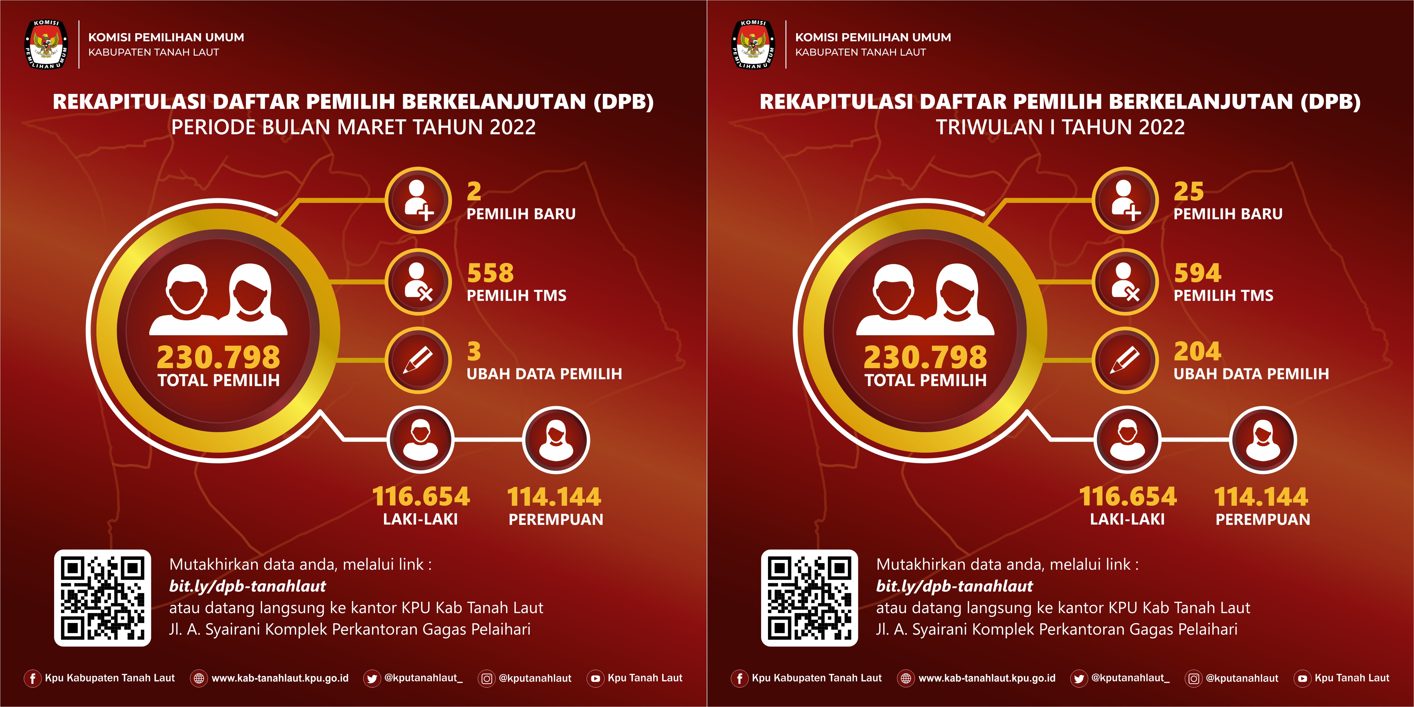 Dalam rangka Pemutakhiran Data Pemilih Berkelanjutan, KPU Kabupaten Tanah Laut mengajak masyarakat terlibat aktif dalam memberikan tanggapan dan masukannya terkait dengan data pemilih yang tidak memenuhi syarat, mengalami perubahan elemen data maupun sebagai pemilih baru.