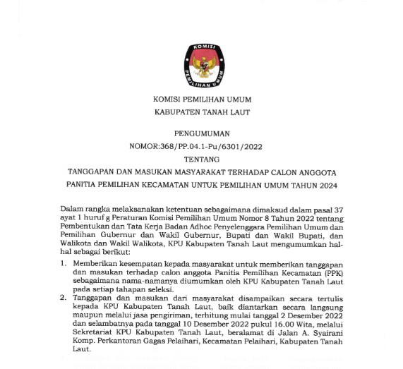 [Keputusan Komisi Pemilihan Umum Nomor 383 Tahun 2022]